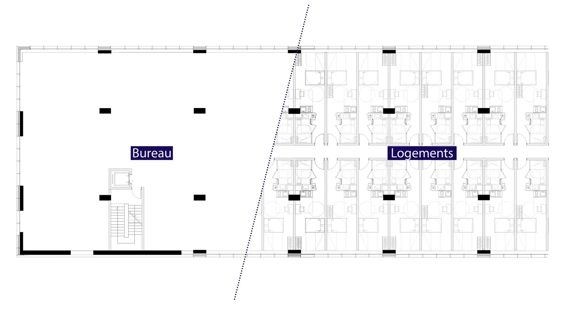 Plans capacitaires maximisant le nombre de logements selon les contraintes de l’existant.
